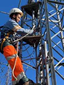 Inspections scrupuleuses des pylônes, recherche d’oxydation, de dégradation mécanique, défaut de serrage, graissage et protection contre les intempéries.